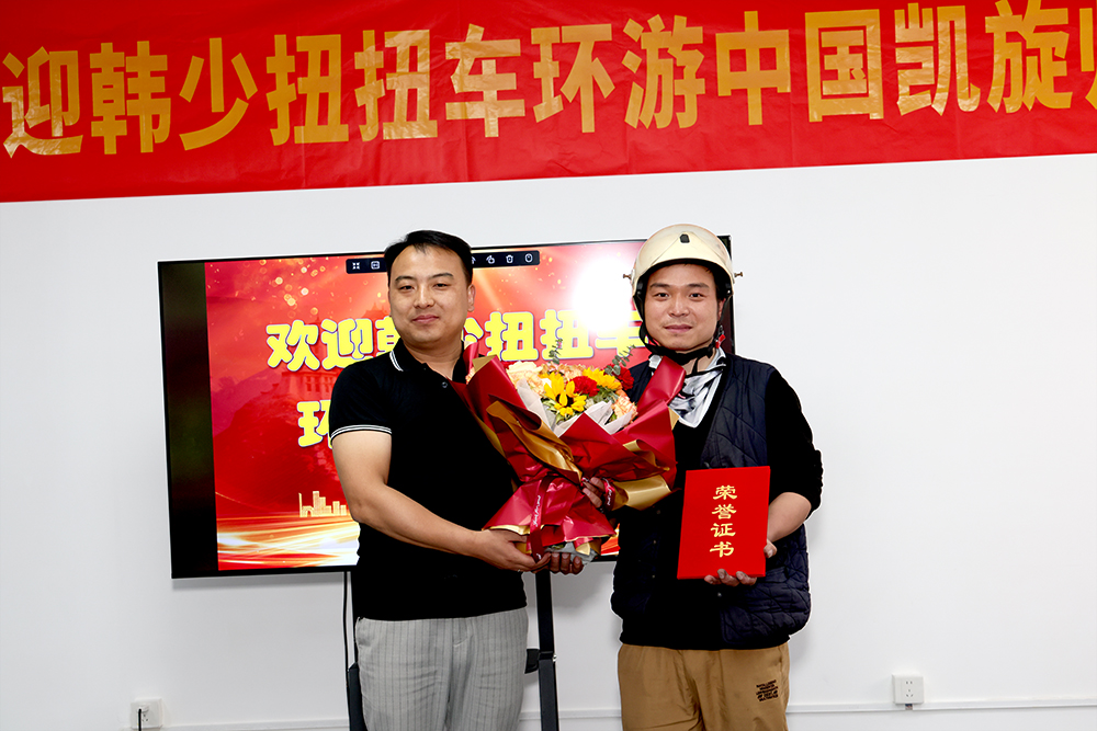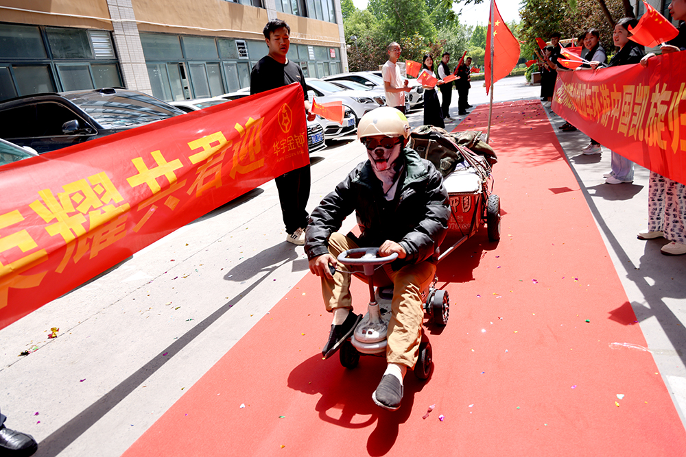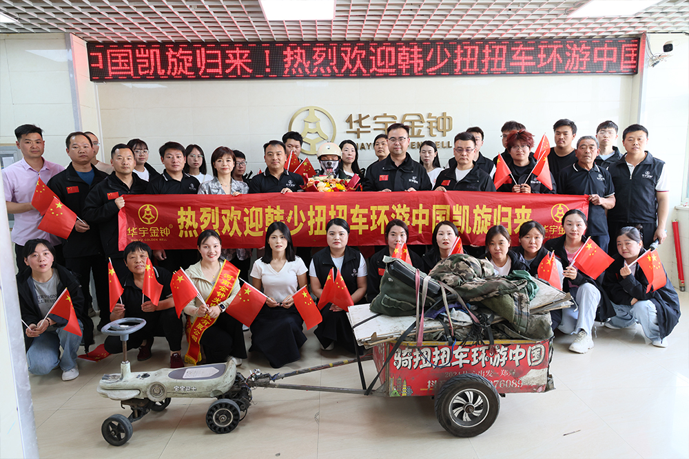 2025年5月12日上午,位于鄭州市高新技術產(chǎn)業(yè)開發(fā)區(qū)的河南金鐘光電科技有限公司人聲鼎沸,一場主題為“逐夢征程 鋰電護航”的別開生面的歡迎儀式在此舉行。扭扭車環(huán)游中國第一人——韓少在金鐘鋰電全體成員的歡呼聲中,騎著穿越中國大江南北的扭扭車沖過金鐘公司大門到達環(huán)游中國終點,完成了這項創(chuàng)紀錄的壯舉。